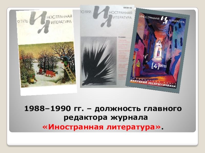 Слайд 121988–1990 гг. – должность главного редактора журнала