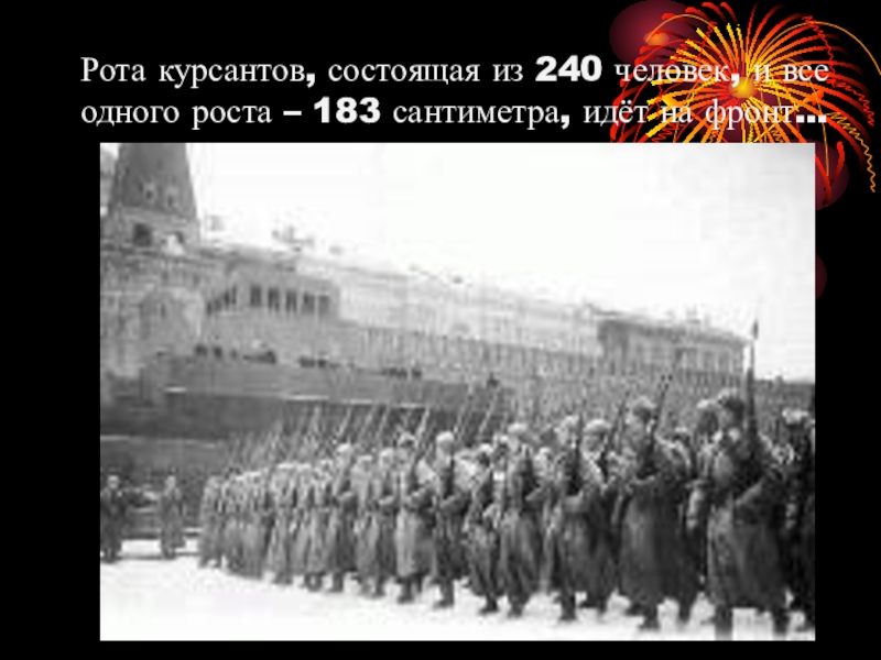 Слайд 6Рота курсантов, состоящая из 240 человек, и все одного роста –