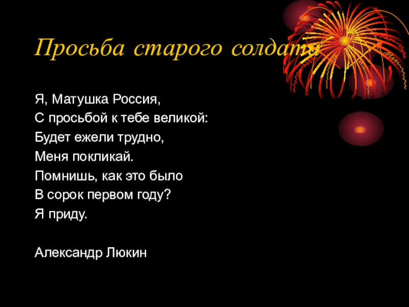 Слайд 19Просьба старого солдата
