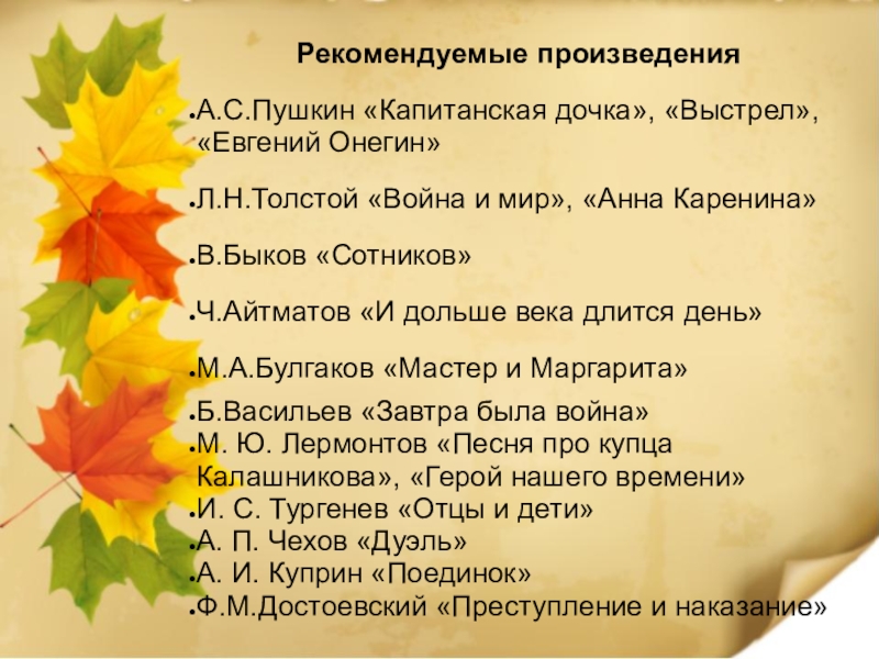 А.С.Пушкин «Капитанская дочка», «Выстрел», «Евгений Онегин»