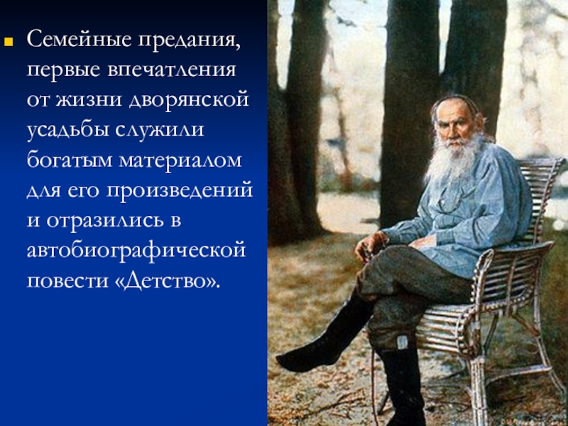 Слайд 10Семейные предания, первые впечатления от жизни дворянской усадьбы служили богатым материалом