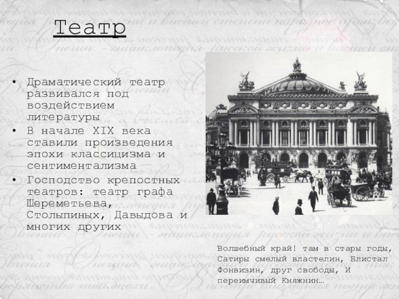 Волшебный край! там в стары годы, Сатиры смелый властелин, Блистал Фонвизин, друг свободы, И переимчивый Княжнин…