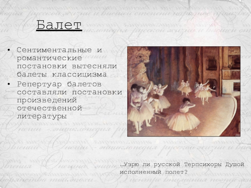 …Узрю ли русской Терпсихоры Душой исполненный полет?