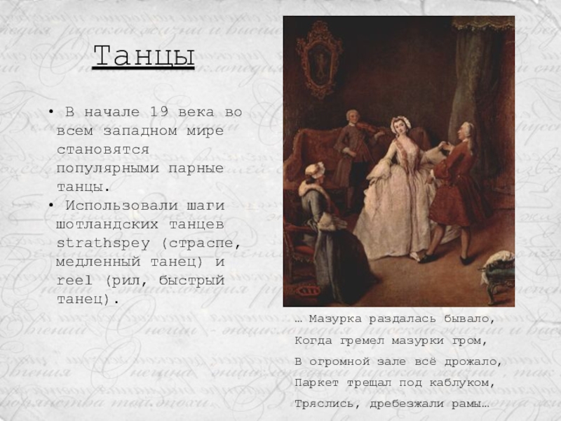 В начале 19 века во всем западном мире становятся популярными парные танцы.