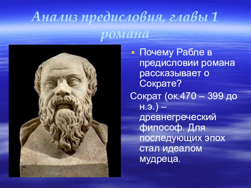 Сократ (ок.470 – 399 до н.э.) – древнегреческий философ. Для последующих эпох стал идеалом мудреца.