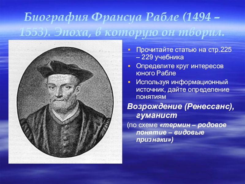 Слайд 3Биография Франсуа Рабле (1494 – 1553). Эпоха, в которую он творил.