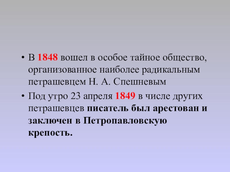 Слайд 11В 1848 вошел в особое тайное общество, организованное наиболее радикальным петрашевцем