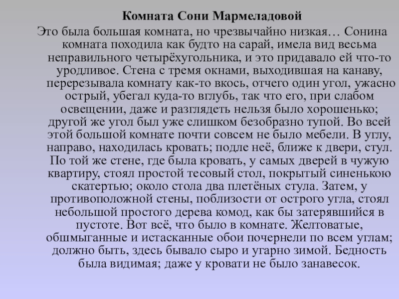 Слайд 23Комната Сони Мармеладовой