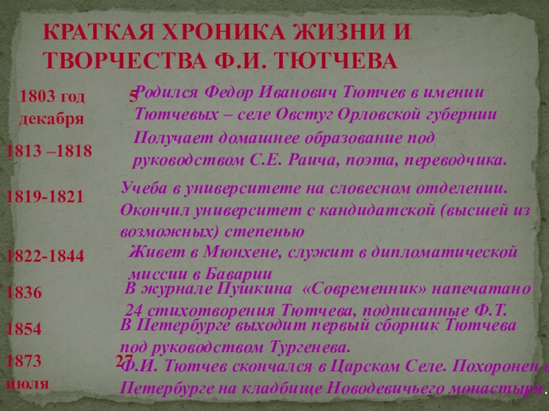 В журнале Пушкина «Современник» напечатано 24 стихотворения Тютчева, подписанные Ф.Т.