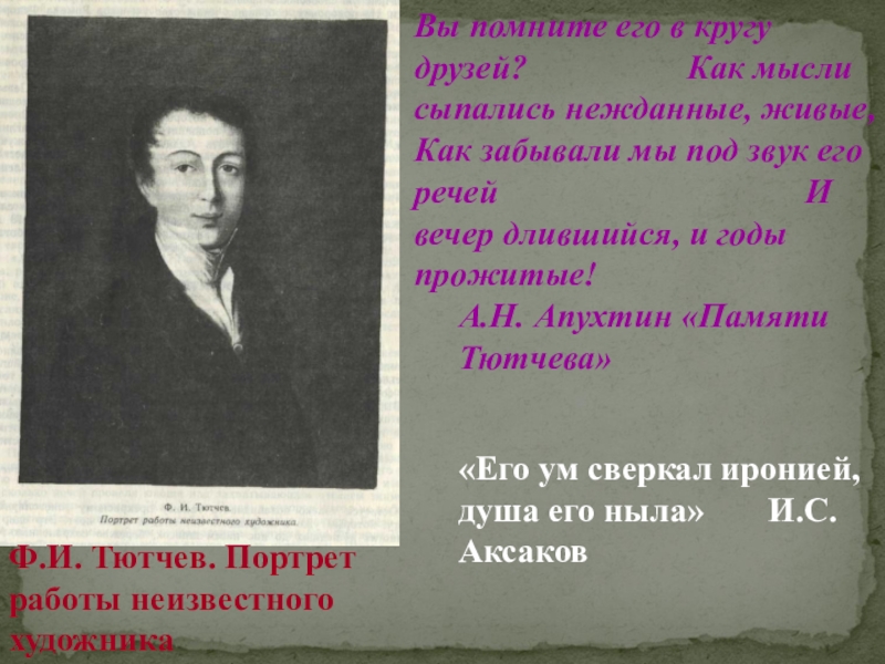 «Его ум сверкал иронией, душа его ныла» И.С. Аксаков