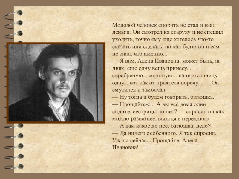 Слайд 21Молодой человек спорить не стал и взял деньги. Он смотрел на