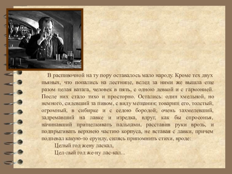 Слайд 25 В распивочной на ту пору оставалось мало народу. Кроме