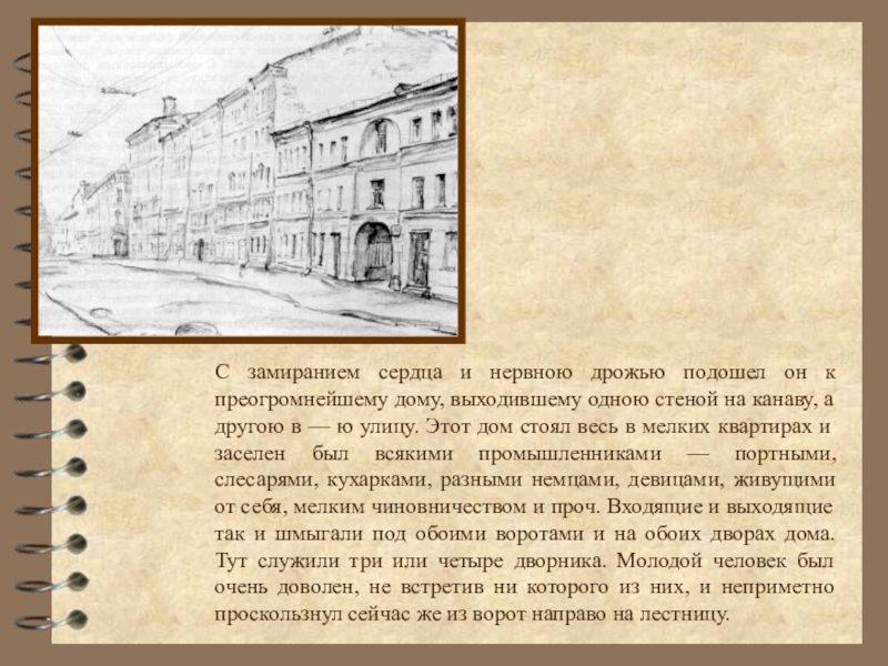 Слайд 12С замиранием сердца и нервною дрожью подошел он к преогромнейшему дому,