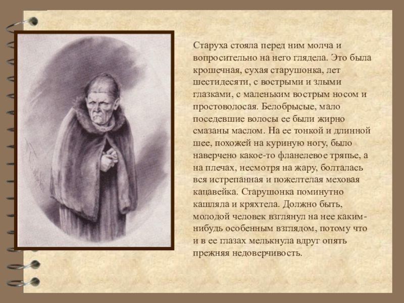 Слайд 15Старуха стояла перед ним молча и вопросительно на него глядела. Это
