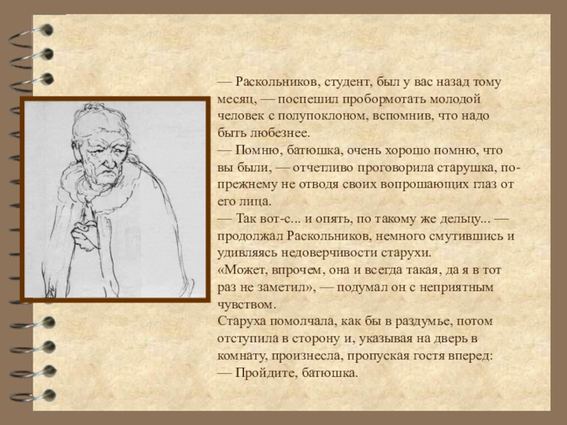 Слайд 16— Раскольников, студент, был у вас назад тому месяц, — поспешил