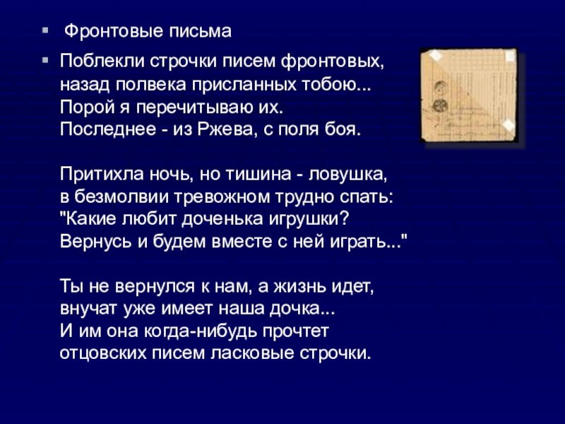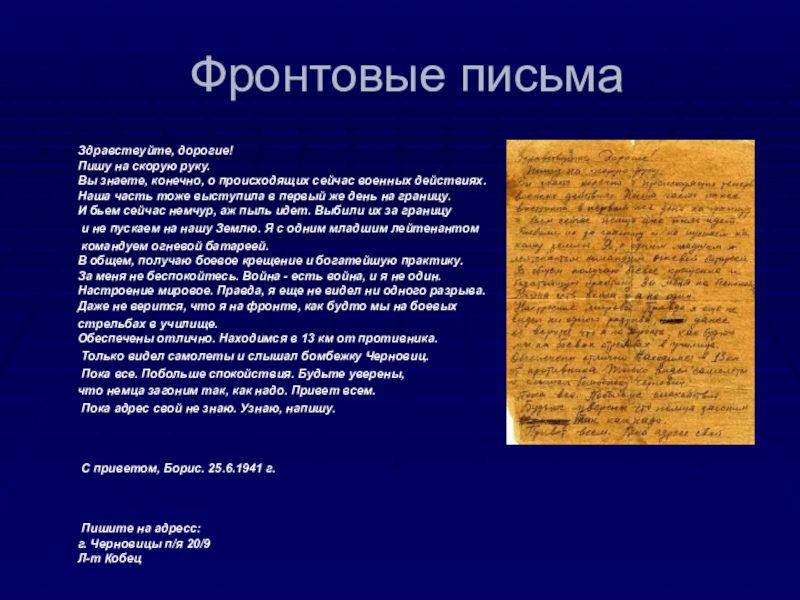 «Прощай, мамочка! Я погибаю…Не плачь обо мне. Я погибаю одна, но за меня отомстят другие. Мама! Передай, что я погибла за Родину. Пусть отомстят за меня, за наши мучения. А как хочется жить, я еще молодая, мне всего 20 лет, а смерть глядит мне в глаза. Как мне хочется работать…Я сейчас нахожусь в смертной камере, жду с минуты на минуту, что к нам войдут и скажут »Выходите!». Идут к нашей камере. Ой, мама! Прощай! Целую всю семью в последний раз».