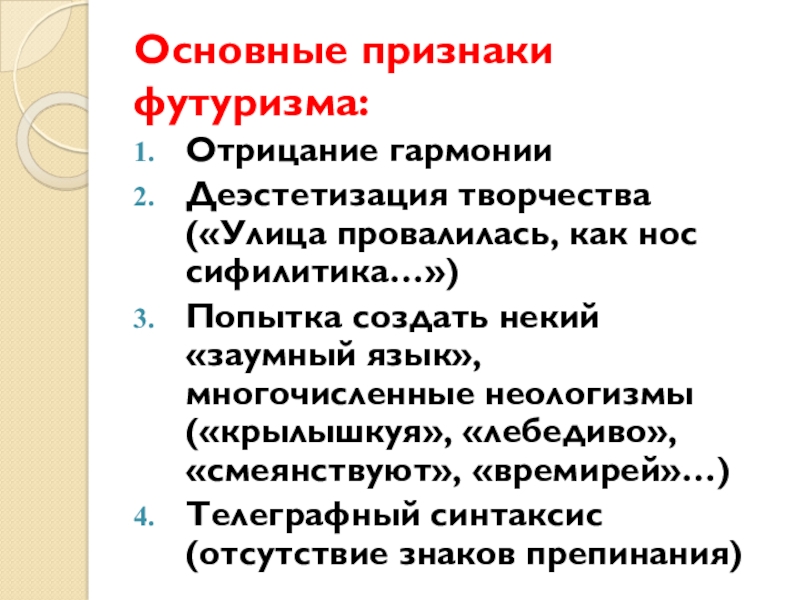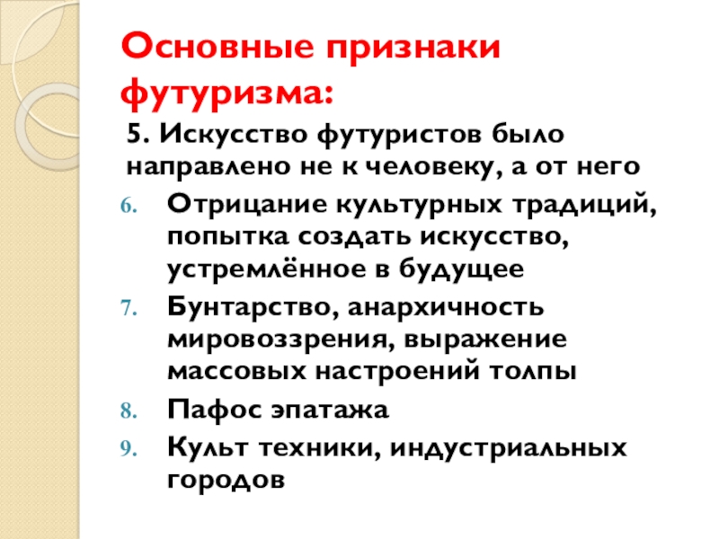 Отрицание культурных традиций, попытка создать искусство, устремлённое в будущее
