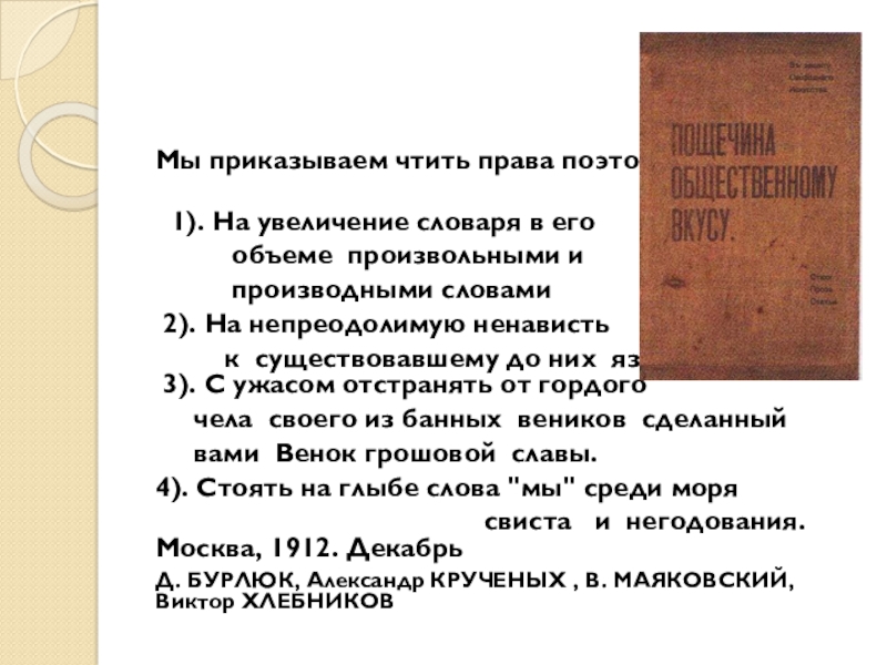 творцов, как Большаков, Бурлюк, Каменский, Кручёных, Лившиц, Маяковский, ...