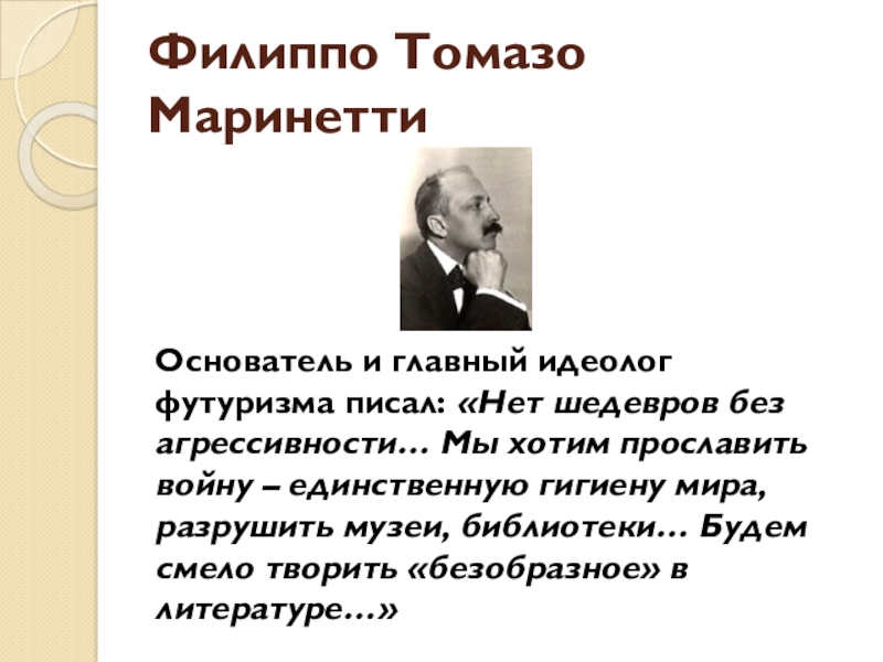 Основатель и главный идеолог футуризма писал: «Нет шедевров без