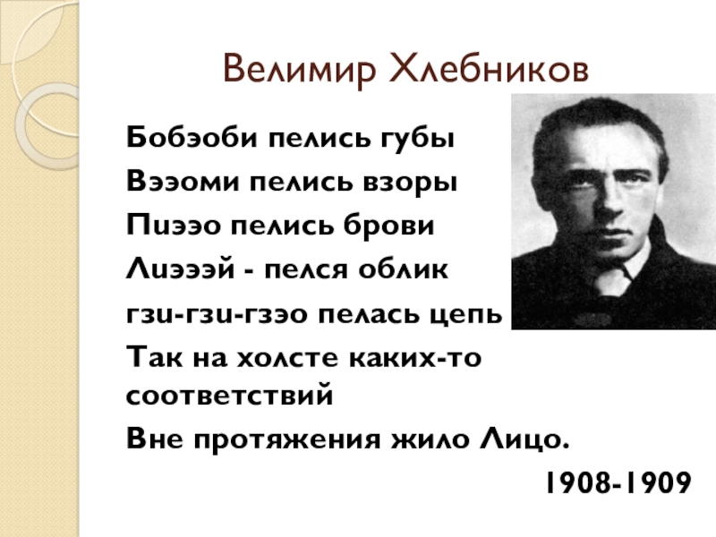 Слайд 17Страница «словотворческой» рукописи В.Хлебникова. 1908г.