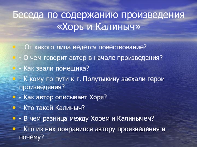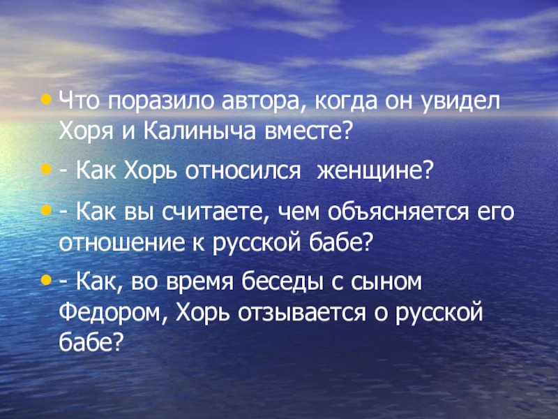 Слайд 9Что поразило автора, когда он увидел Хоря и Калиныча вместе?