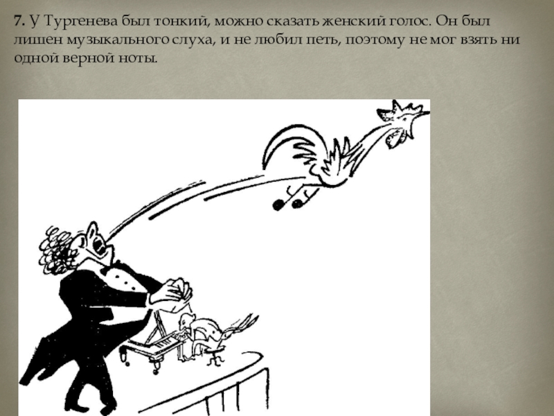 Слайд 77. У Тургенева был тонкий, можно сказать женский голос. Он был