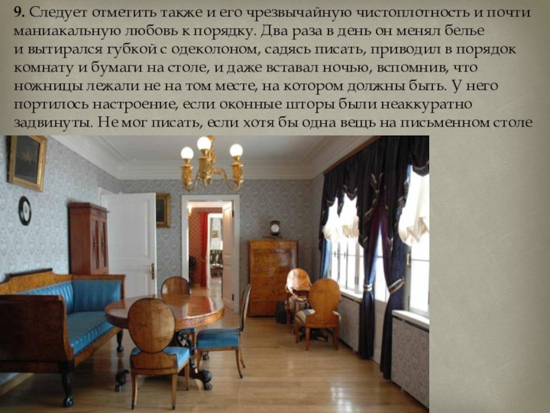 Слайд 99. Следует отметить также и его чрезвычайную чистоплотность и почти маниакальную любовь к порядку.