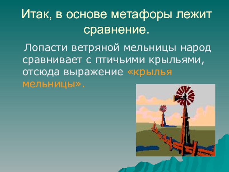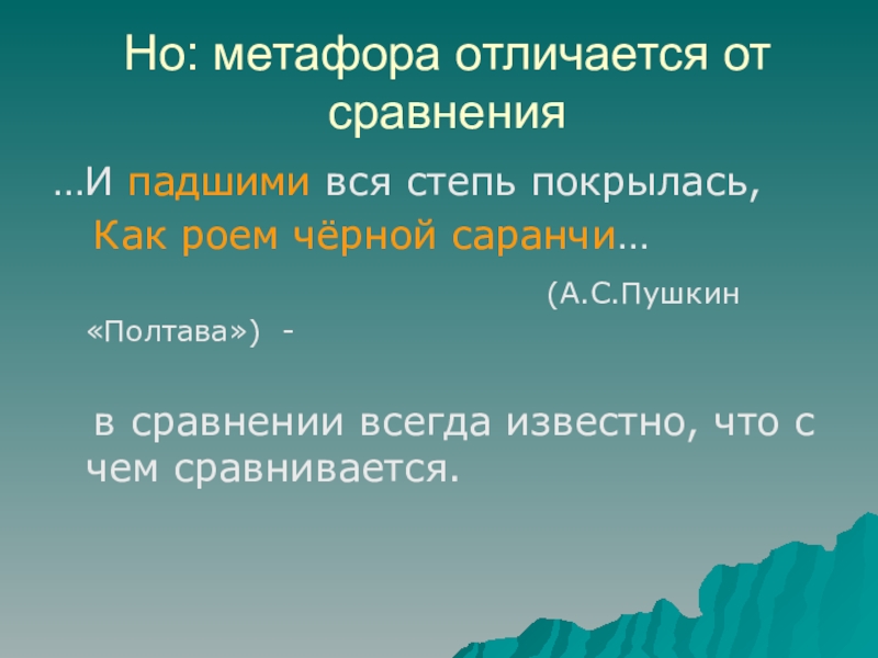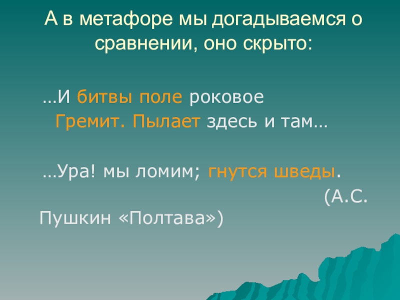 Слайд 11А в метафоре мы догадываемся о сравнении, оно скрыто: