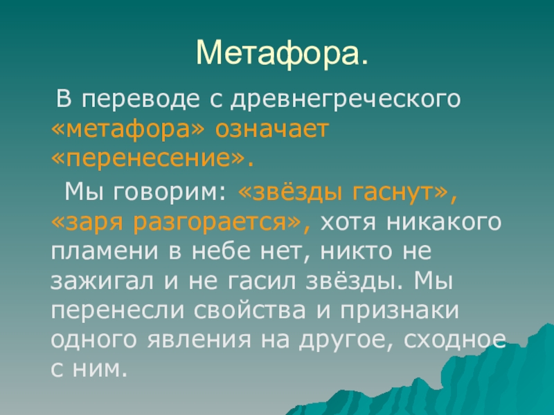 В переводе с древнегреческого «метафора» означает «перенесение».