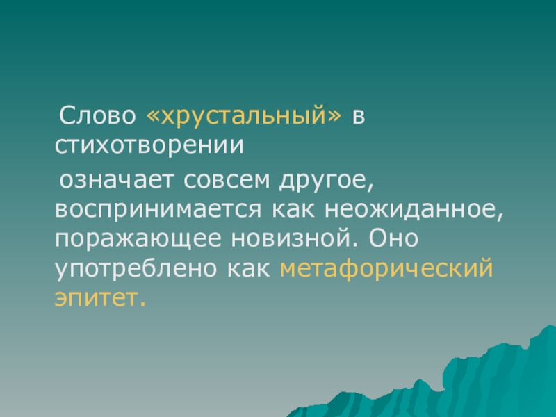 воспринимается как неожиданное, поражающее новизной. Оно употреблено как метафорический эпитет.