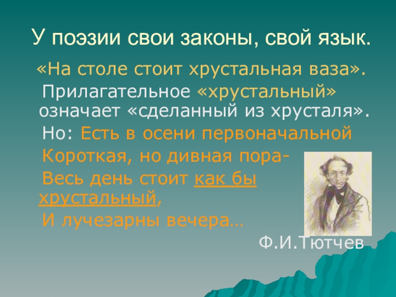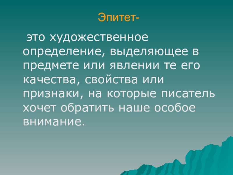 его качества, свойства или признаки, на которые писатель хочет обратить наше особое внимание.