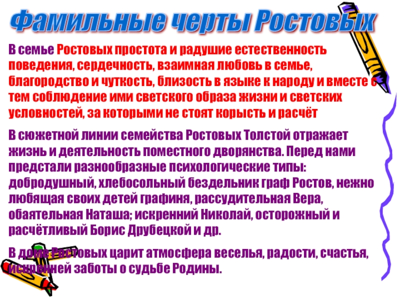 -Какие черты присущи всем Ростовым? («Фамильные черты»)