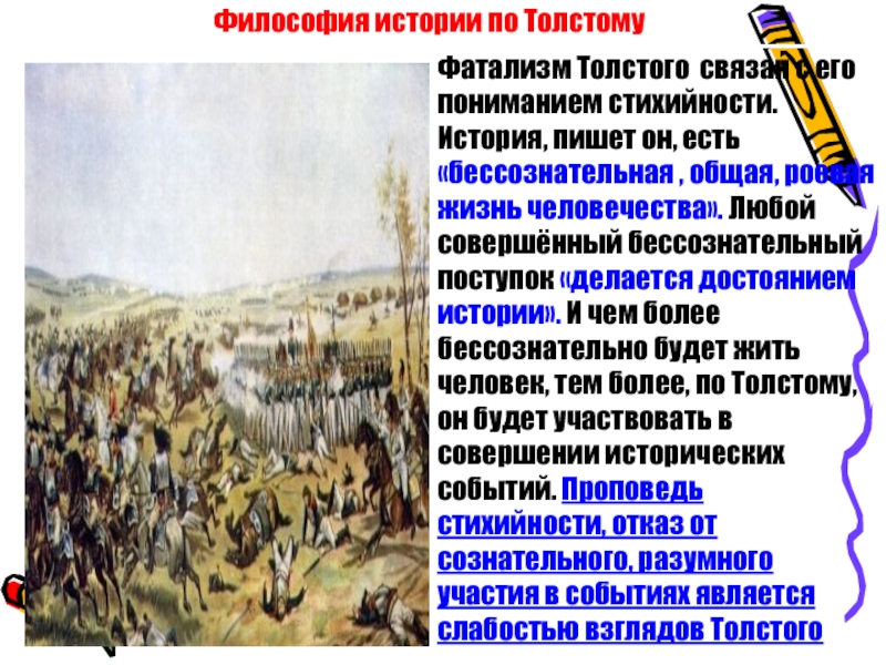 В этих словах – гордость Толстого и преклонение его перед народной силой, которую он любил именно как силу стихийную