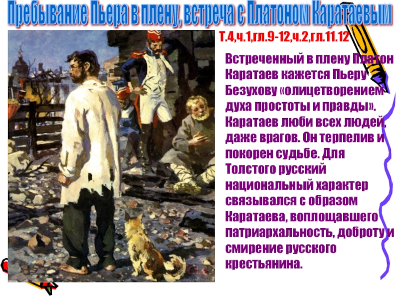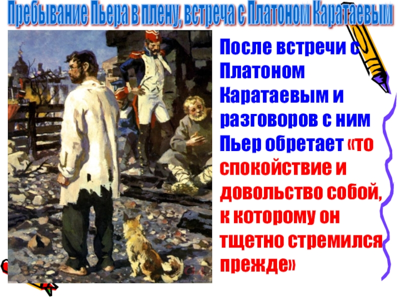 Слайд 51Пребывание Пьера в плену, встреча с Платоном Каратаевым