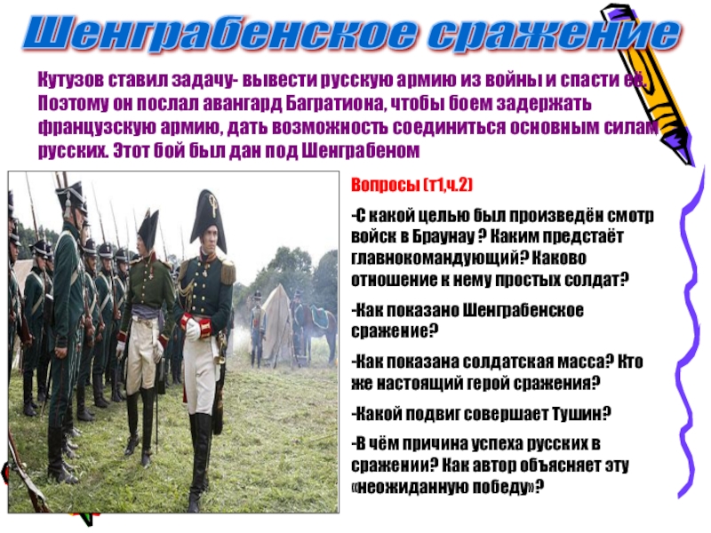 Г) проявление мудрости и таланта полководца в поддержке нравственного духа русского войска