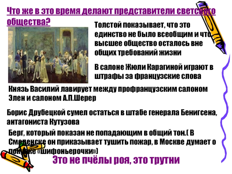 Слайд 10Эпизод именин следует за сценами вечера у Шерер