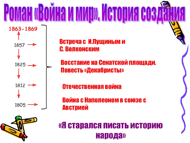 Слайд 2Роман «Война и мир». История создания