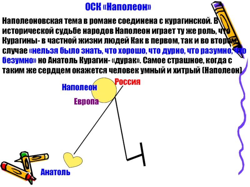 народов Наполеон играет ту же роль, что Курагины- в частной жизни людей Как в первом, так и во втором случае «нельзя было знать, что хорошо, что дурно, что разумно, что безумно» но Анатоль Курагин- «дурак». Самое страшное, когда с таким же сердцем окажется человек умный и хитрый (Наполеон)