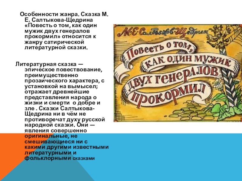 Особенности жанра. Сказка М.Е. Салтыкова-Щедрина «Повесть о том, как один мужик двух генералов прокормил» относится