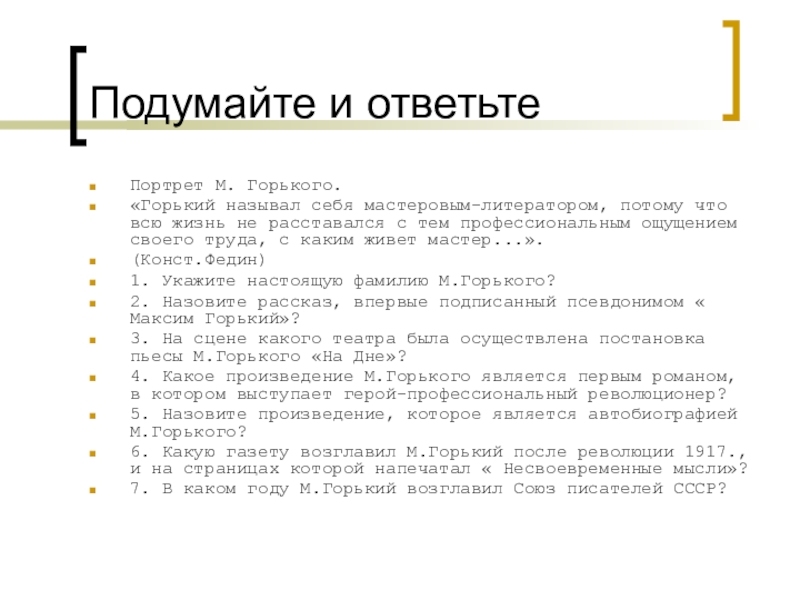 7. В каком году М.Горький возглавил Союз писателей СССР?