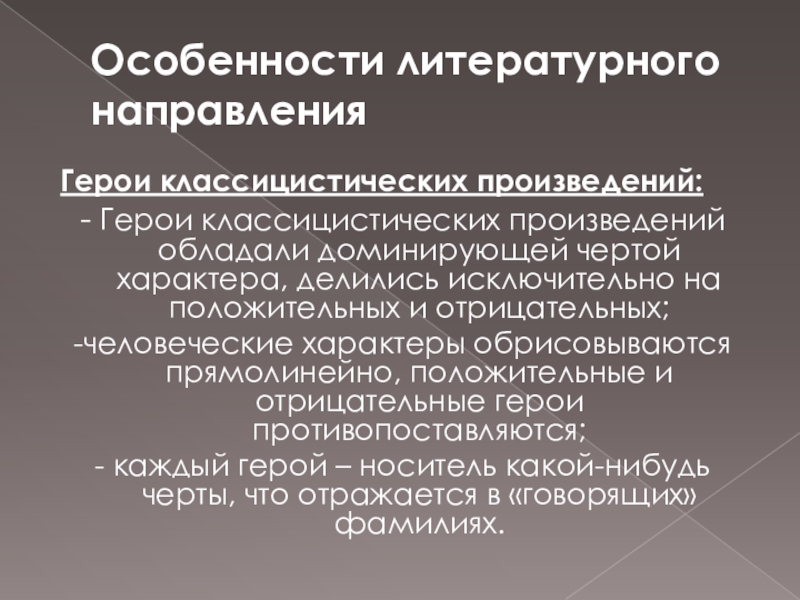 - Герои классицистических произведений обладали доминирующей