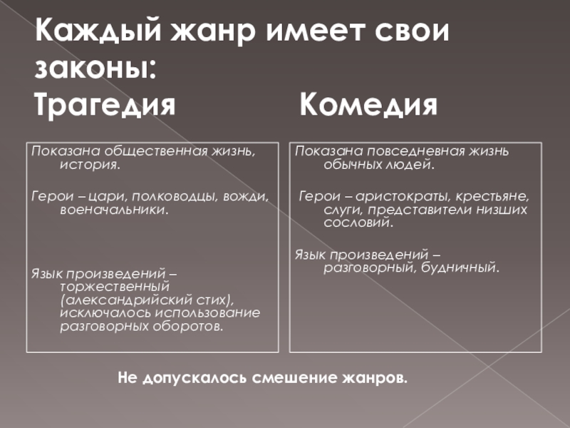 Не допускалось смешение жанров.