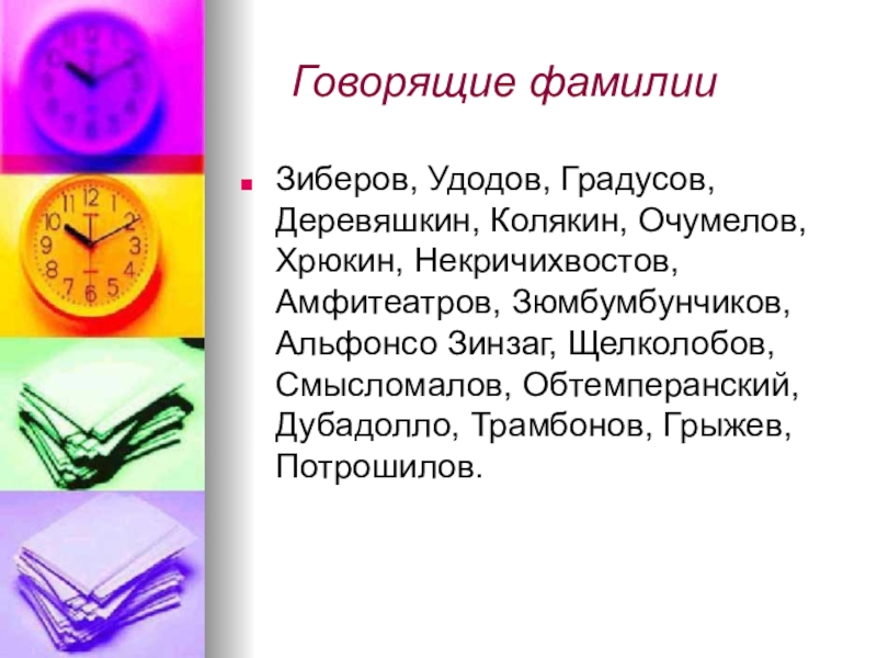 Зиберов, Удодов, Градусов, Деревяшкин, Колякин, Очумелов, Хрюкин, Некричихвостов,