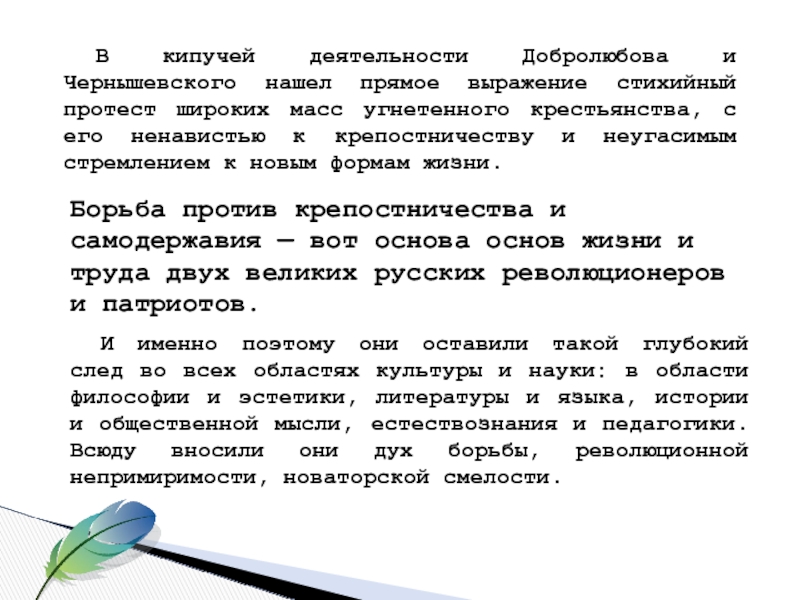 Слайд 15В кипучей деятельности Добролюбова и Чернышевского нашел прямое выражение стихийный протест