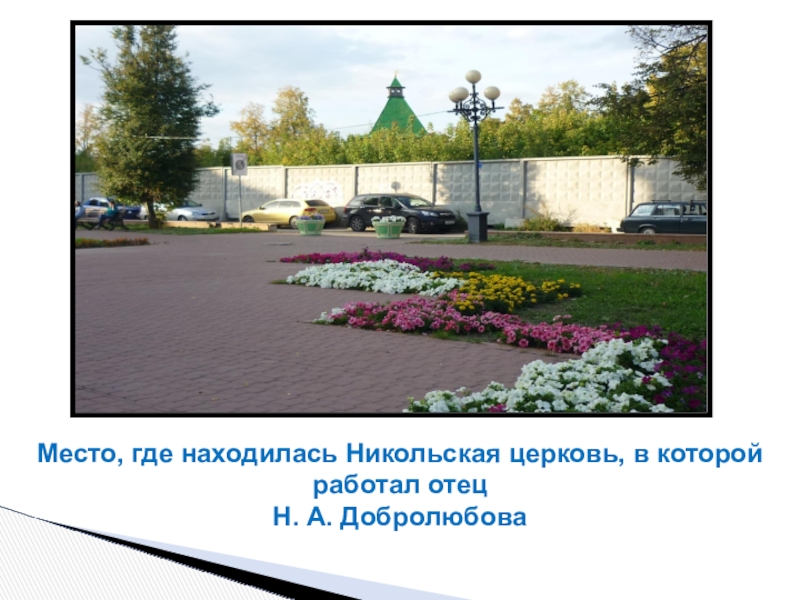 Слайд 37Место, где находилась Никольская церковь, в которой работал отец
