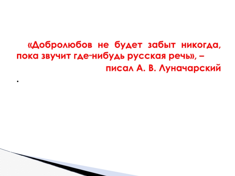 Слайд 27«Добролюбов не будет забыт никогда, пока звучит где‑нибудь русская речь», –
