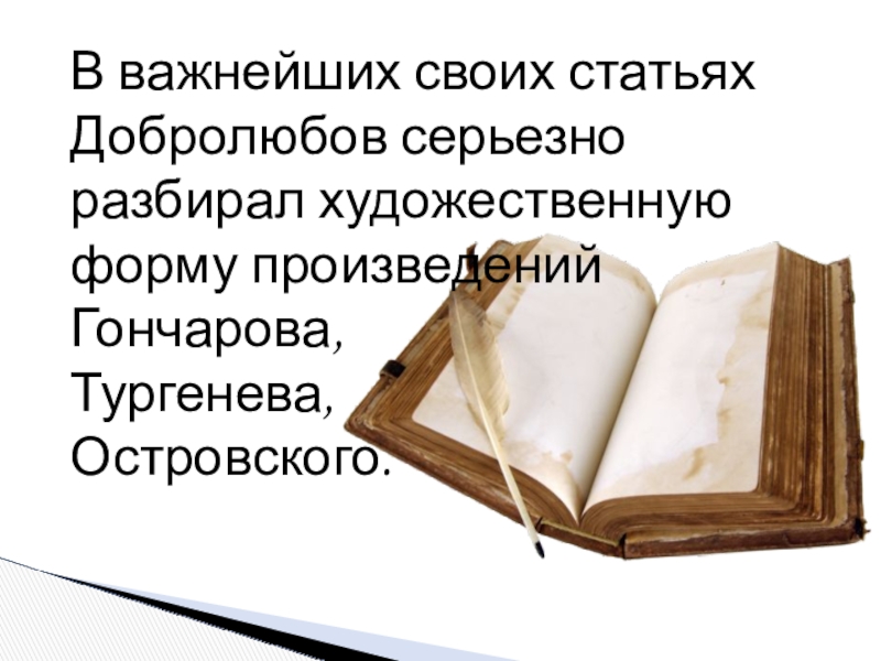Слайд 18В важнейших своих статьях Добролюбов серьезно разбирал художественную форму произведений