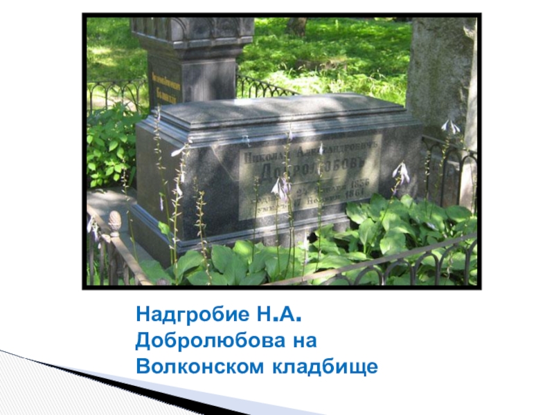 Слайд 38Надгробие Н.А. Добролюбова на Волконском кладбище