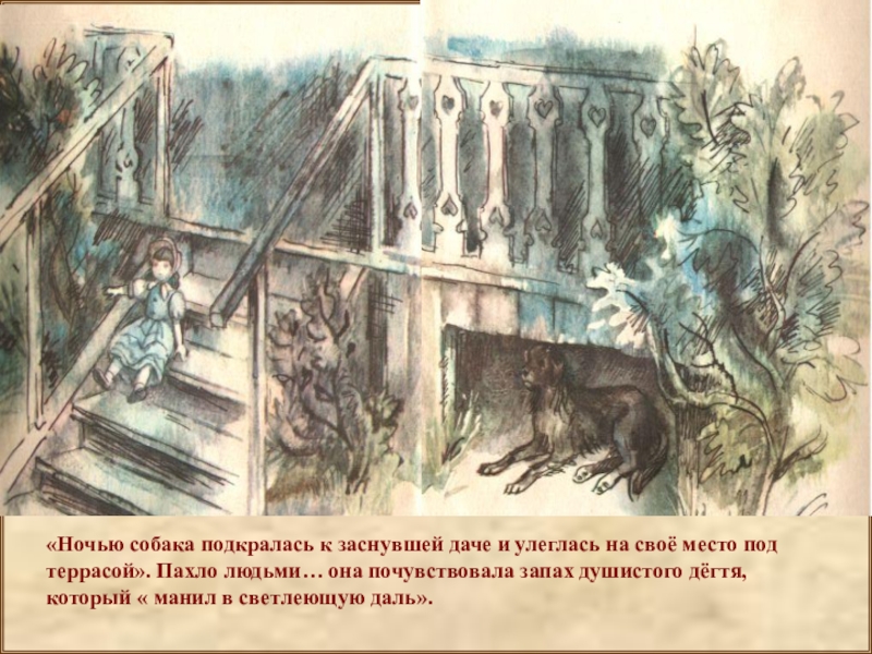 «Ночью собака подкралась к заснувшей даче и улеглась на своё место под террасой». Пахло людьми… она почувствовала