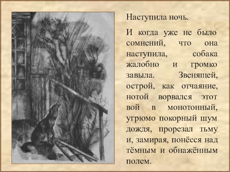 Слайд 15Собака выла – ровно, настойчиво и безнадёжно спокойно. И тому, кто